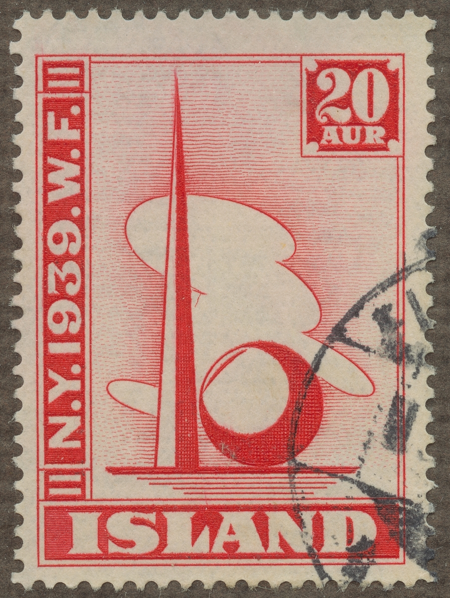 Frimärke från Island, 1939. Motiv av Symbolbild för Islands deltagande i utställningen i New York: 1939.