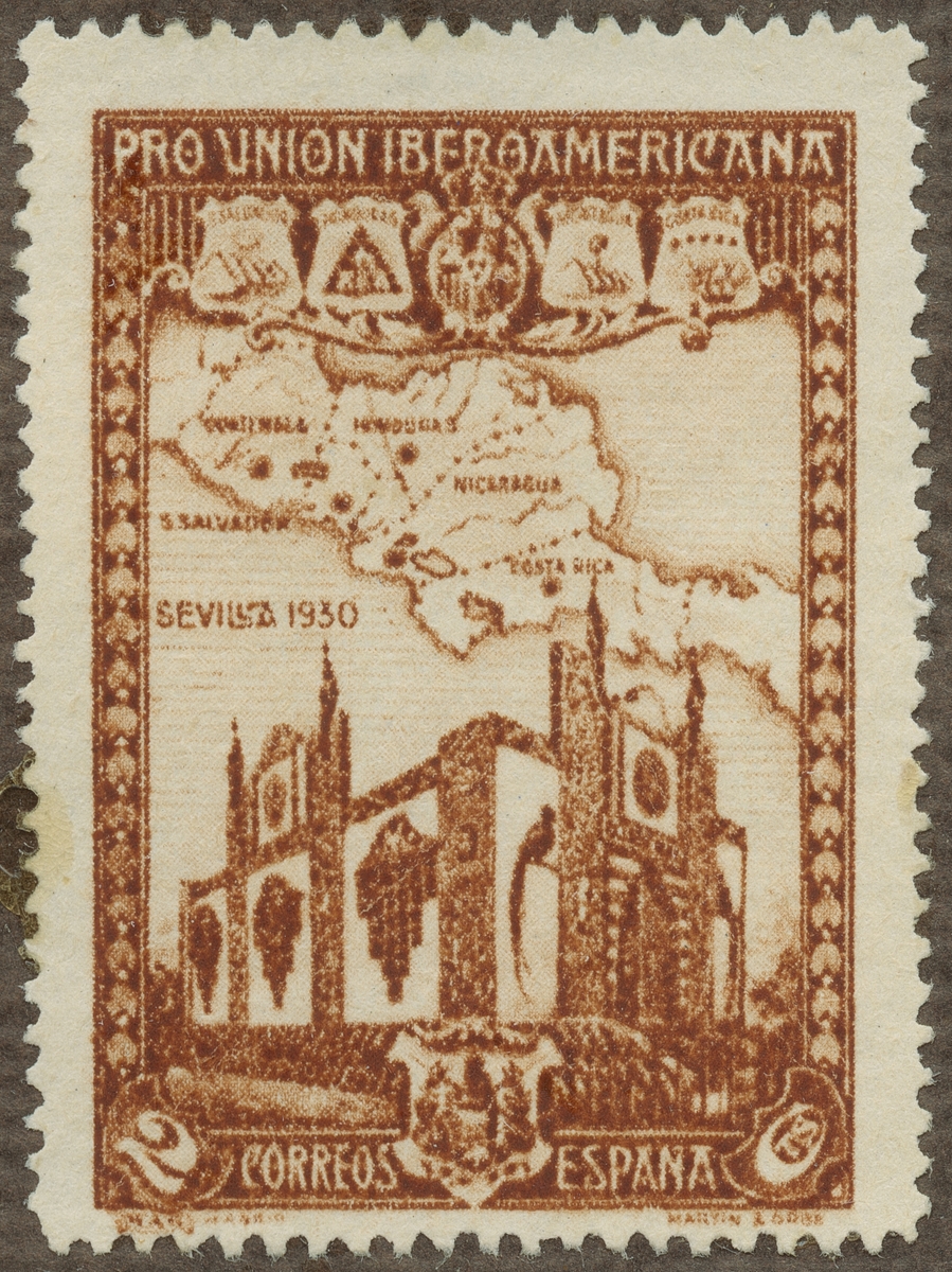 Frimärke från Spanien, 1930. Motiv av Centralamerikas paviljong Utställningen i Sevilla 1930.