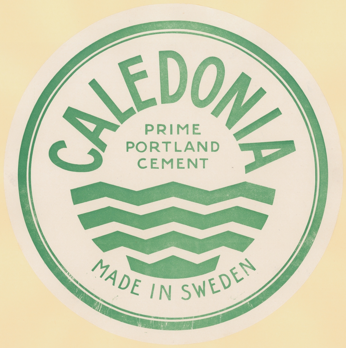 Fabriksmärke för cementpåsar. Caledonia. Prime Portland Cement.