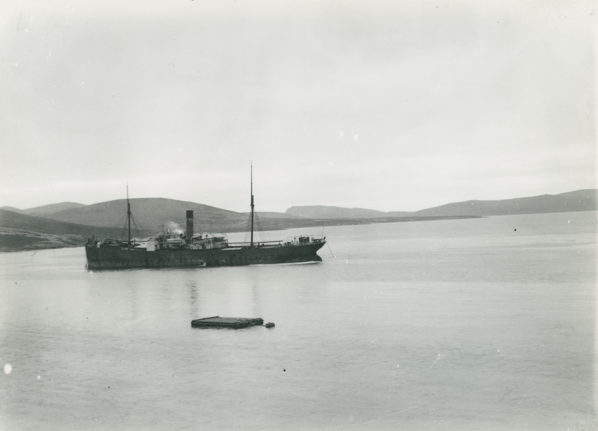 Bild från expedition i Antarktisområdet. Motiv av hav, båt och berg.