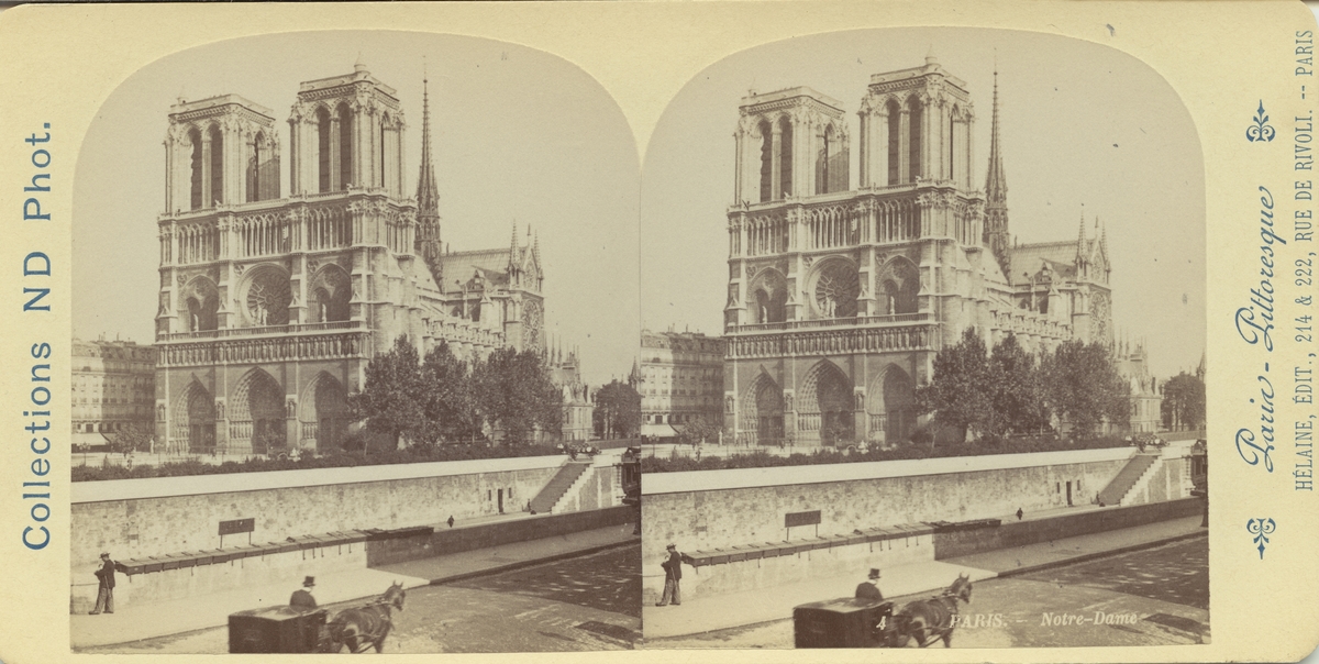 Stereobild med motiv av katedralen Notre Dame, Paris.