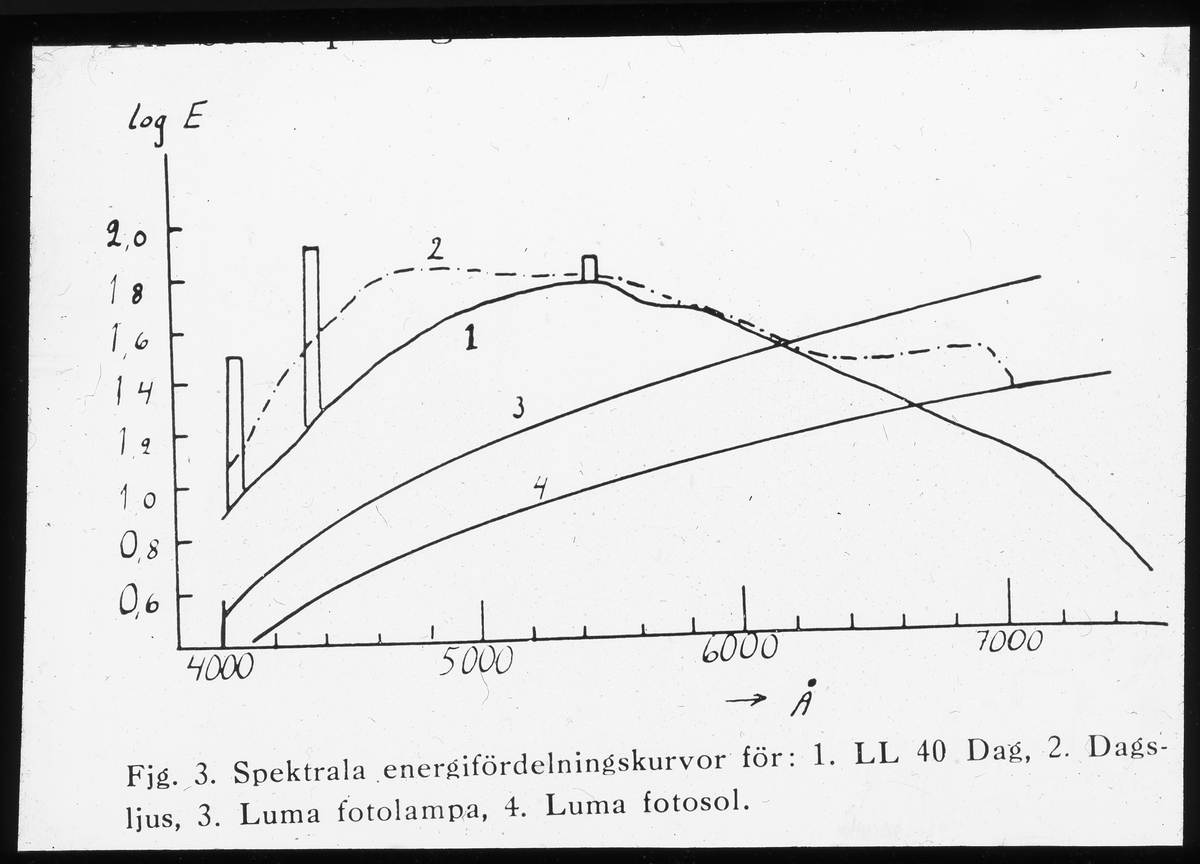 Skioptikonbild från Institutionen för fotografi vid Kungliga Tekniska Högskolan. Använd av professor Helmer Bäckström som föreläsningsmaterial. Bäckström var Sveriges första professor i fotografi vid Kungliga Tekniska Högskolan i Stockholm 1948-1958.