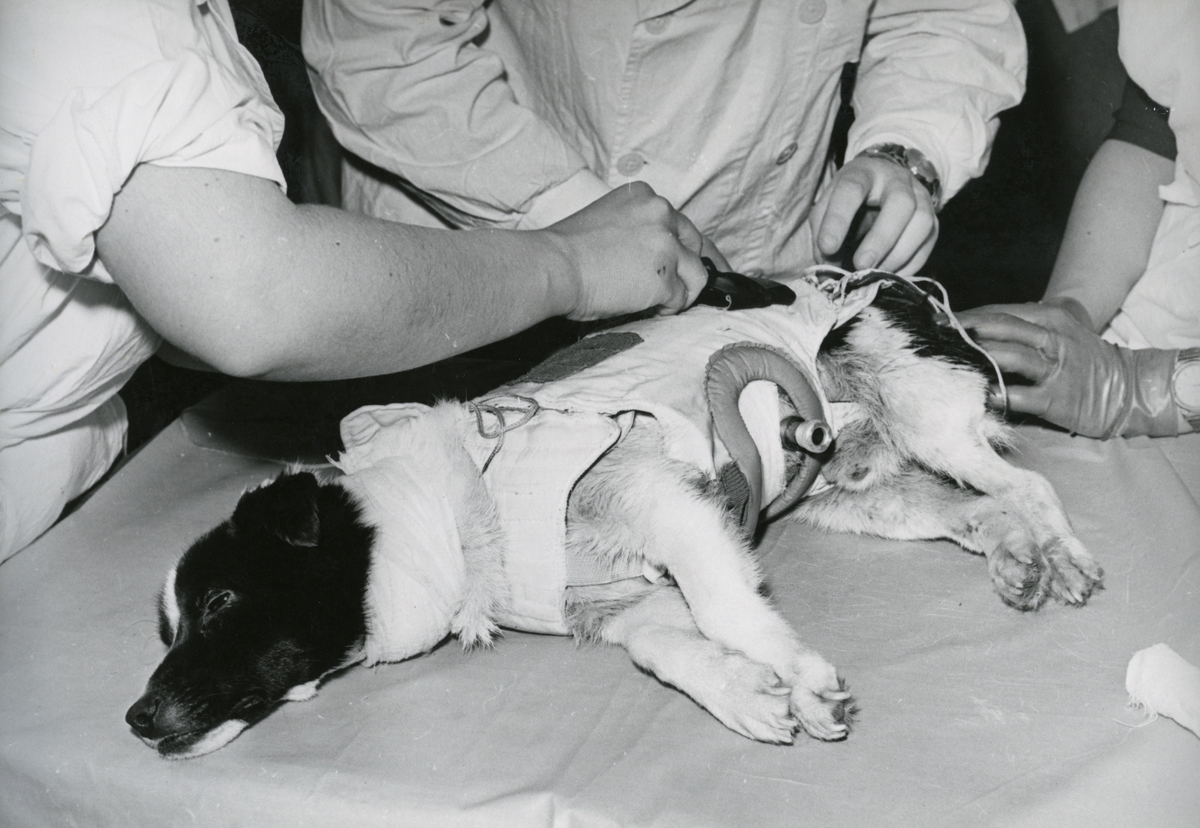 Rymdhunden Veterok. Efter att ha återvänt från en 22 dygns rymdfärd.