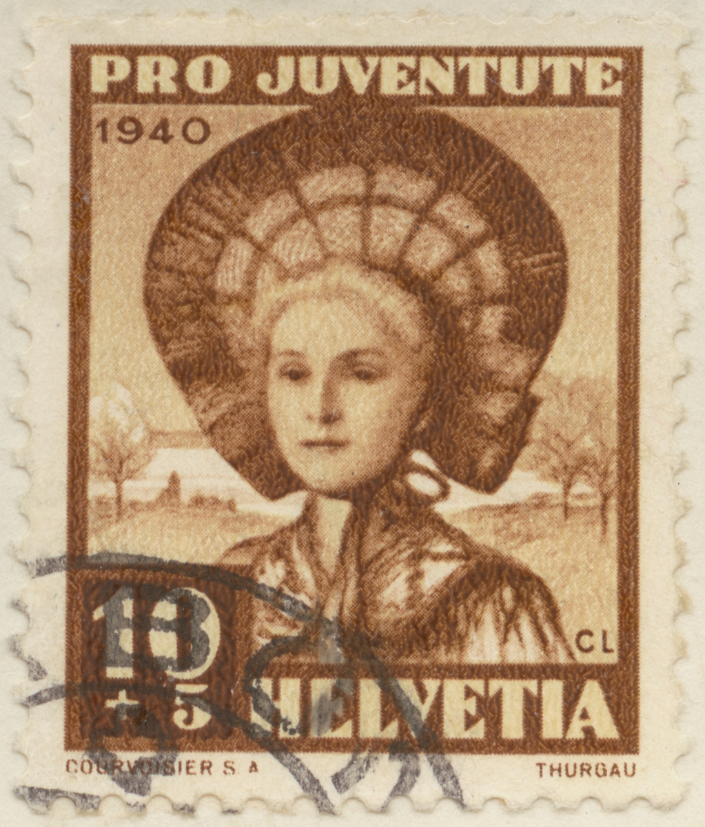 Frimärke från Schweiz, 1940. Motiv av kvinnodräkt, Thurgau.