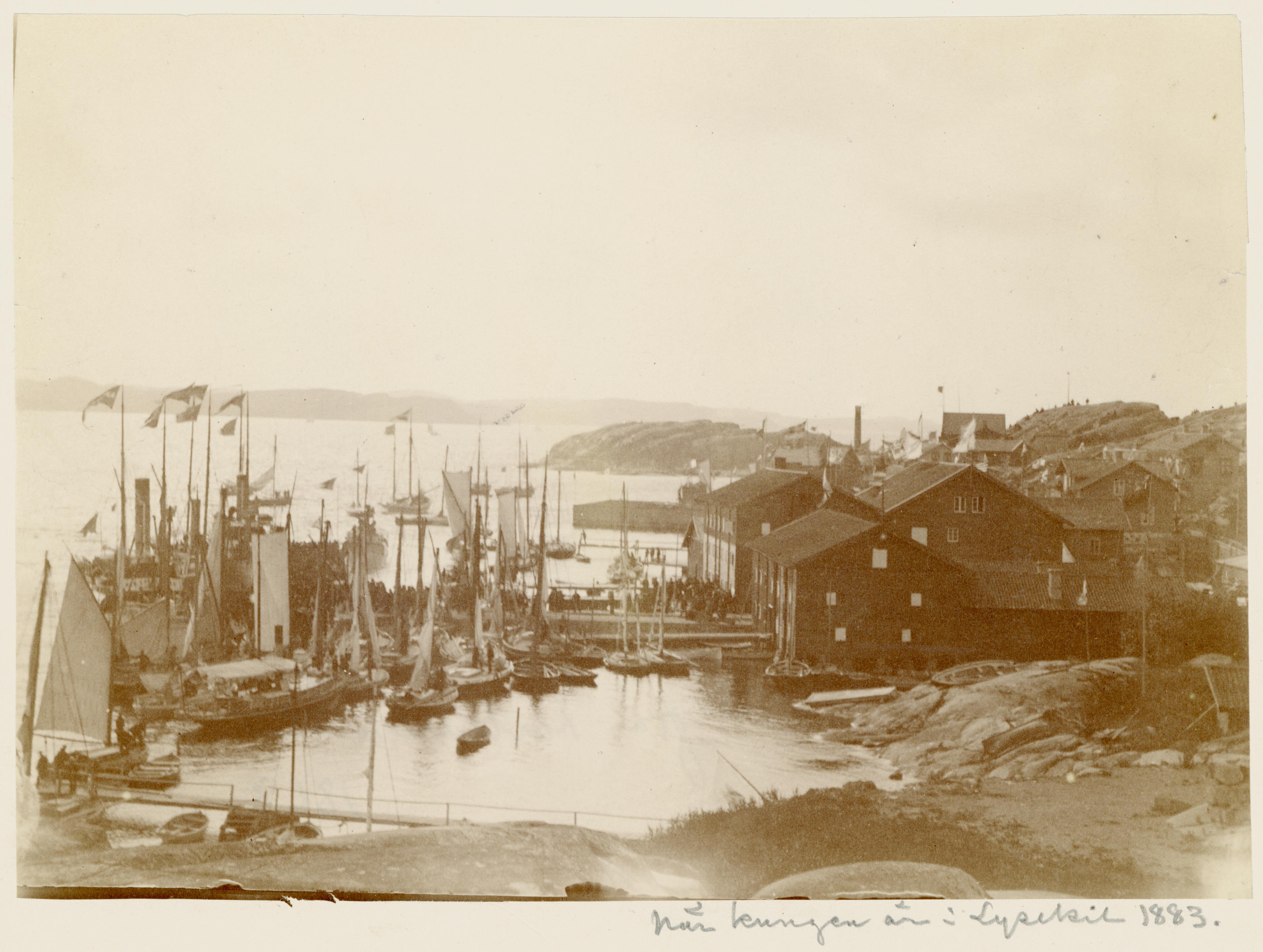 "När kungen är i Lysekil 1883". Vy vid kungabesöket 1883.