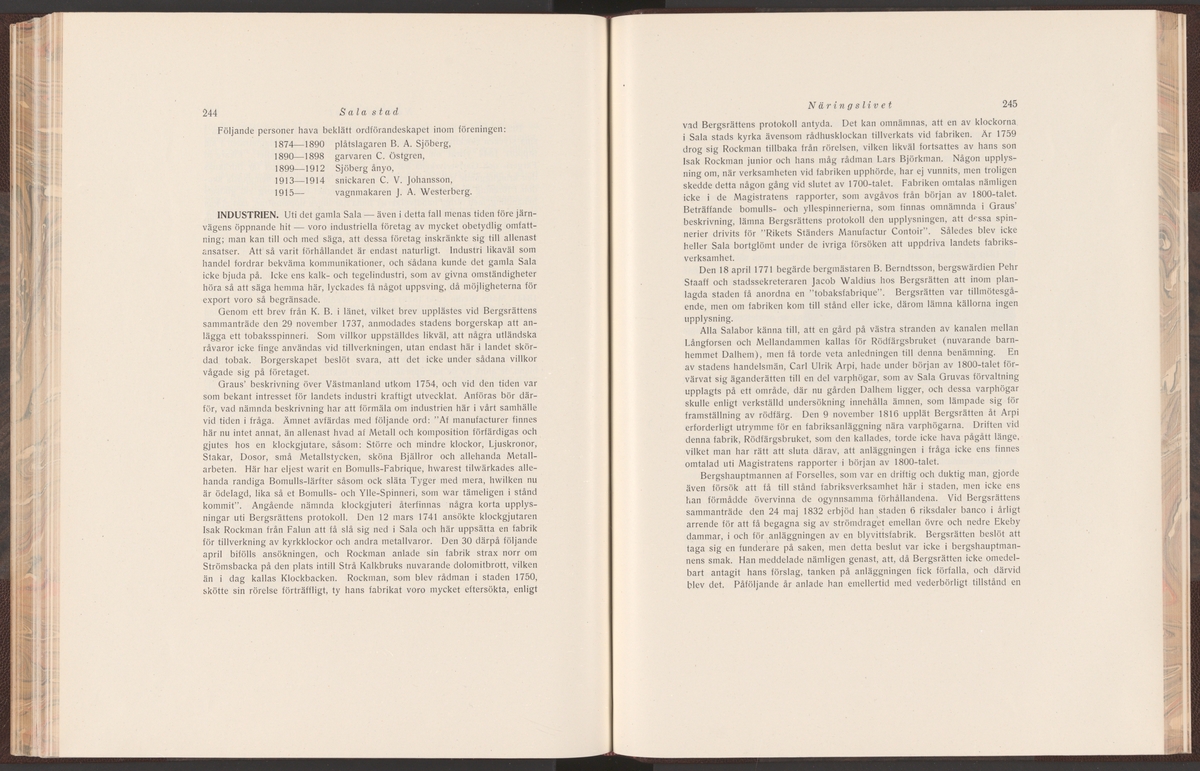 Titel: Sala gruva och silververks kronologi. Sala Silvergruva. Ur Carl Sahlins bergshistoriska samling.