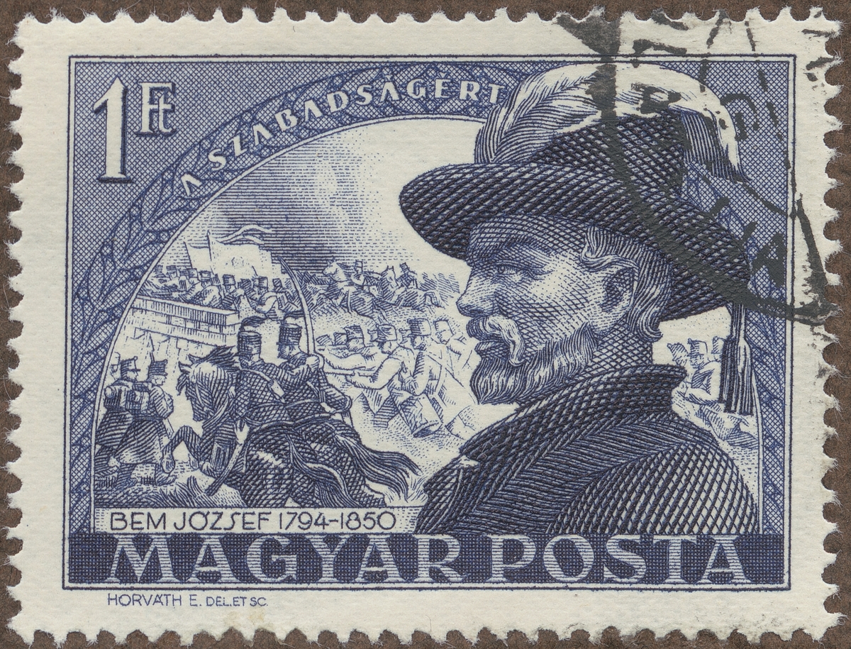 Frimärke från Ungern, 1950. Motiv av Jozsef Bem 1794-1850. Ungersk General 100-årsminne av hans död.