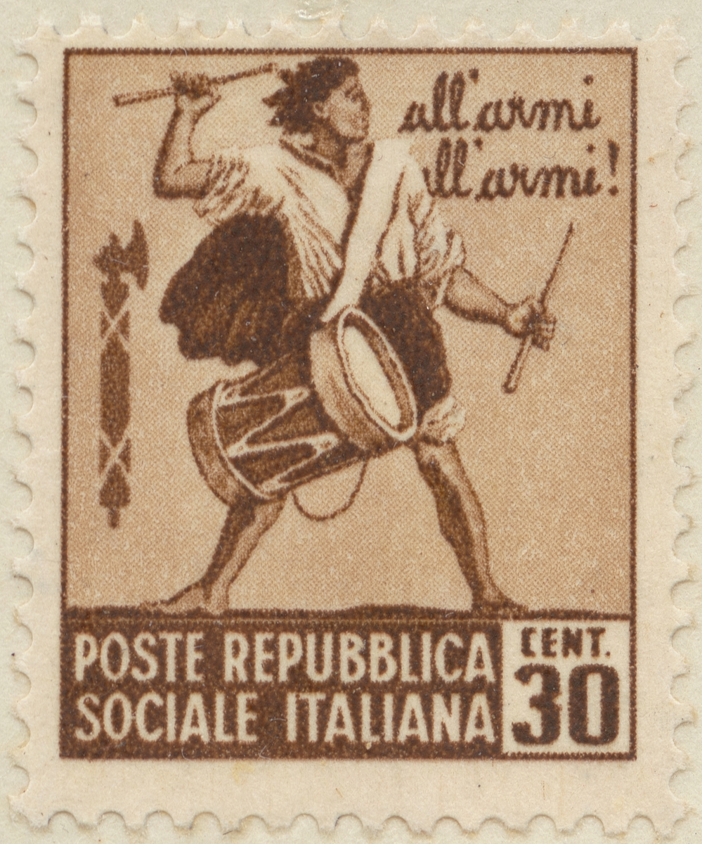 Frimärke från Italien, 1944. Motiv av Trummslagare