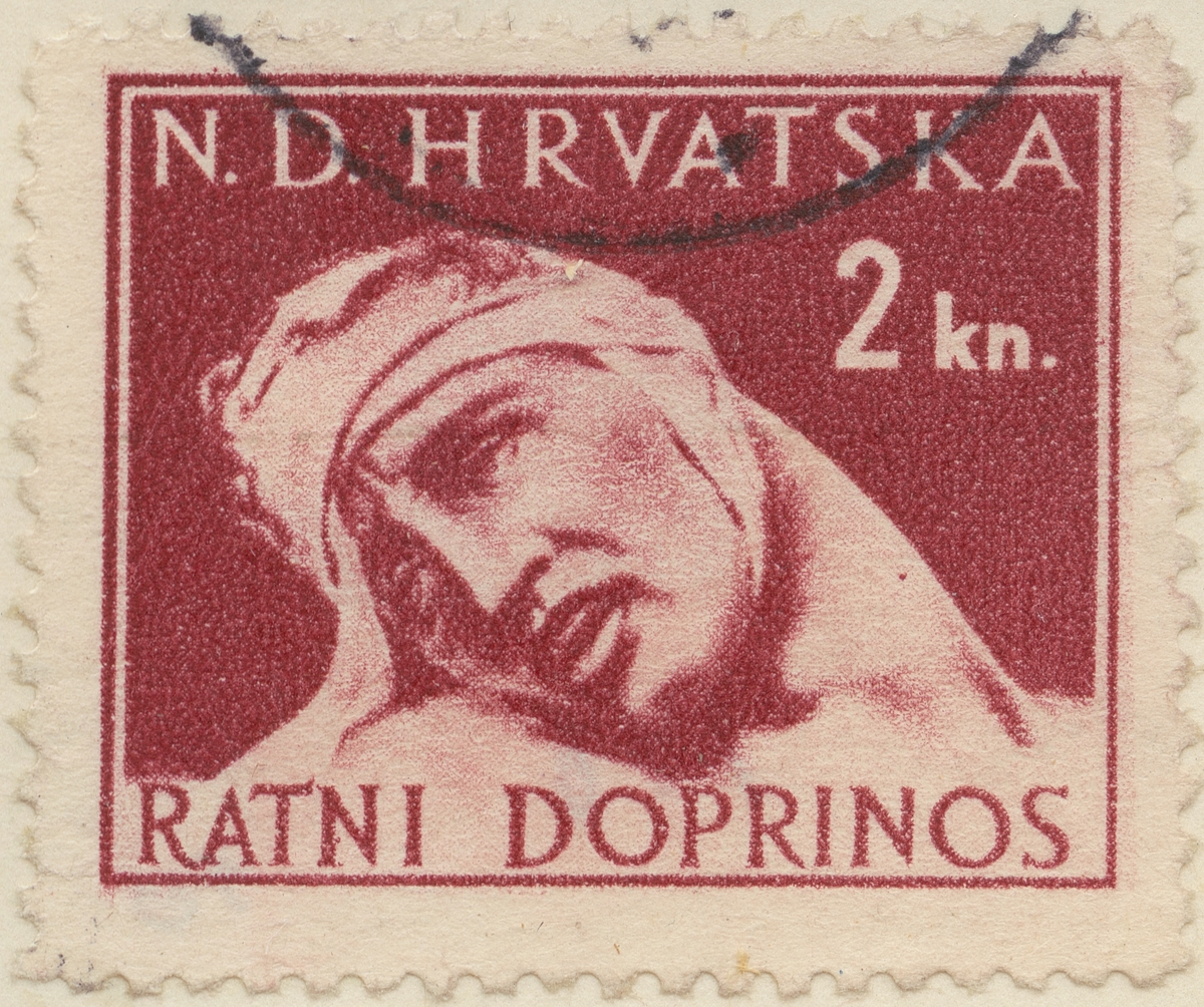Frimärke från Kroatien, 1943. Motiv av Sårad krigare -Välgörenhet-