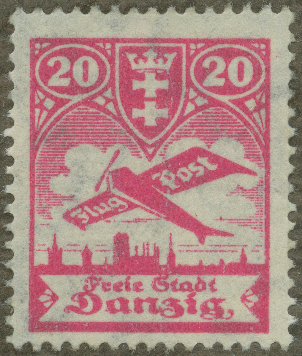 Frimärke från Danzig, 1924. Motiv av Postmonoplan