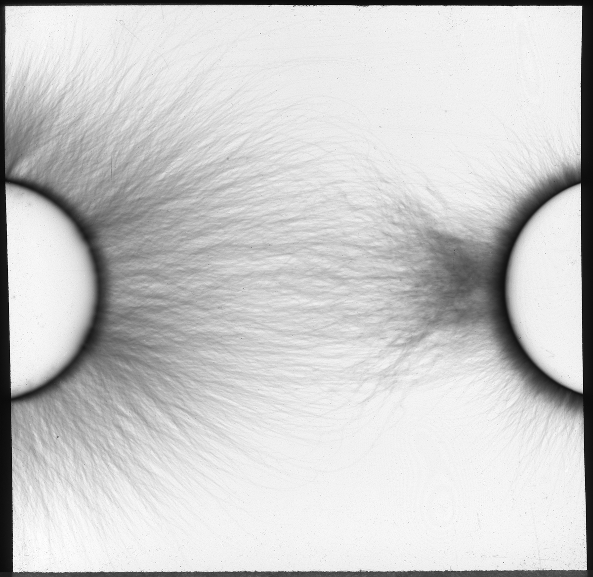 Skiotikonbild från institutionen för fotografi vid Kungliga Tekniska Högskoaln. Använd av professor Helmer Bäckström som undervisningsmaterial. Bäckström var Sveriges förste professor i fotografi vid Kungliga Tekniska Högskolan 1948-1958. Bilden visar (möjligen) elektriska spänningsfält.