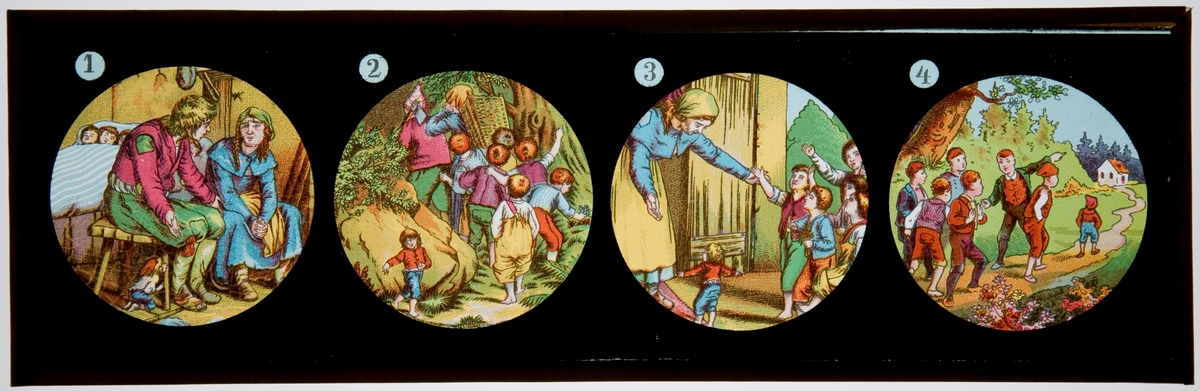 Titel: Målad bild på glas för Skioptikon/Laterna magica. Saga.