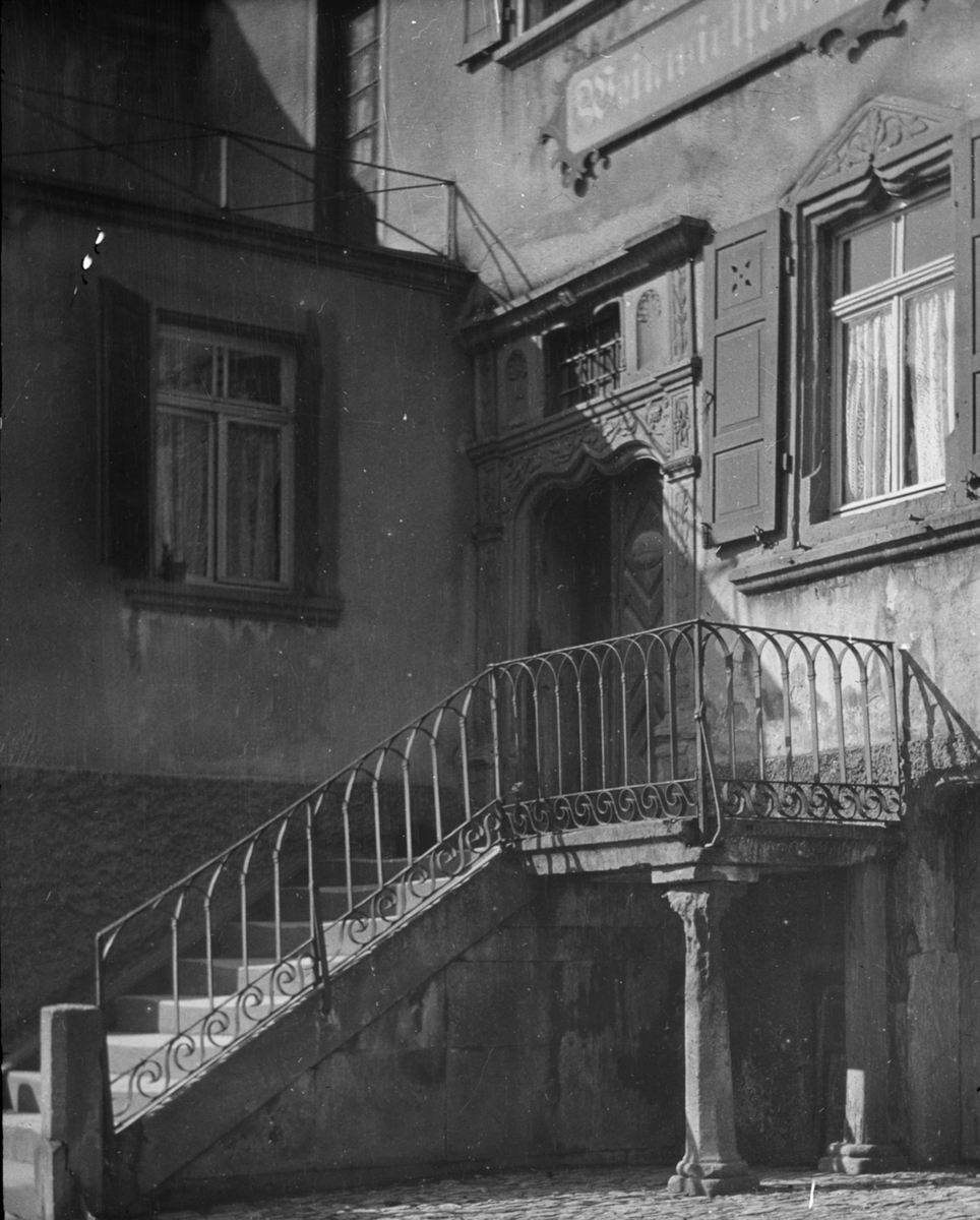 Titel: Skioptikonbild med motiv från Wimpfen. Bilden har förvarats i kartong märkt: Wimpfen. III. Text på bild: "Wimpfen am Berg".