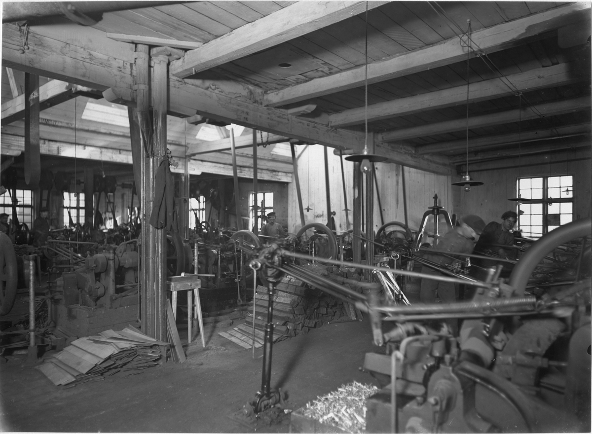 Interiör av spikfabrikens klippavdelning. Boxholms bruk.