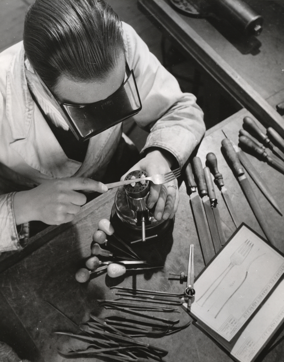 Justering av matgafflar vid Gustaf Erikssons Metallfabrik, Eskilstuna.