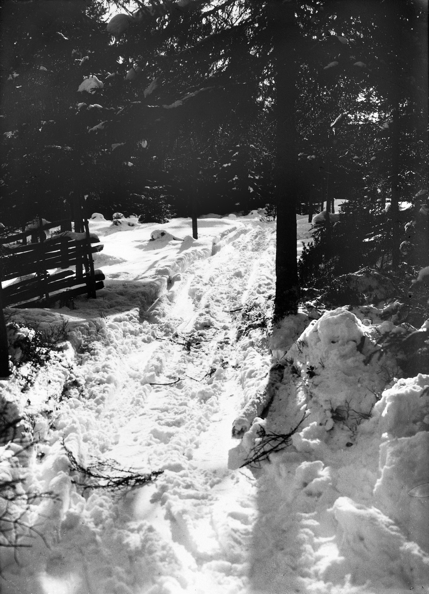 Diapositiv med motiv av skogsparti i vinterskrud. Troligen i Hedemoratrakten.