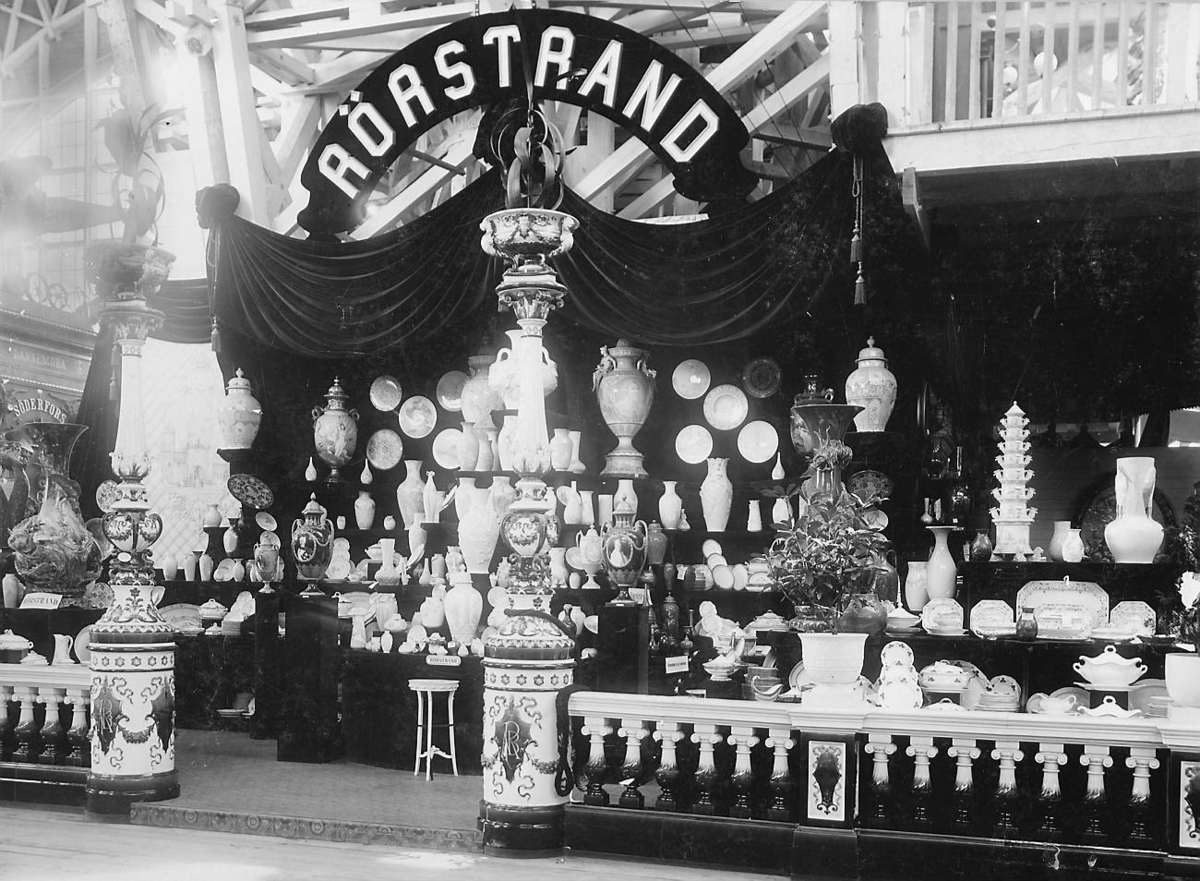 Rörstrands Porslinsfabriks monter vid Allmänna Konst- och Industriutställningen i Stockholm 1897.