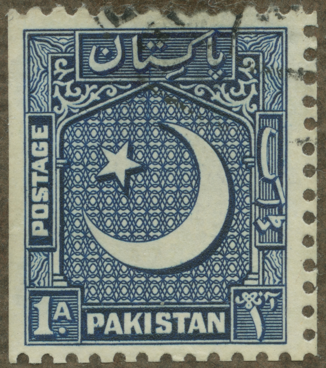 Frimärke ur Gösta Bodmans filatelistiska motivsamling, påbörjad 1950. Frimärke från Pakistan, 1948. Motiv av Femuddig stjärna i halvmåne