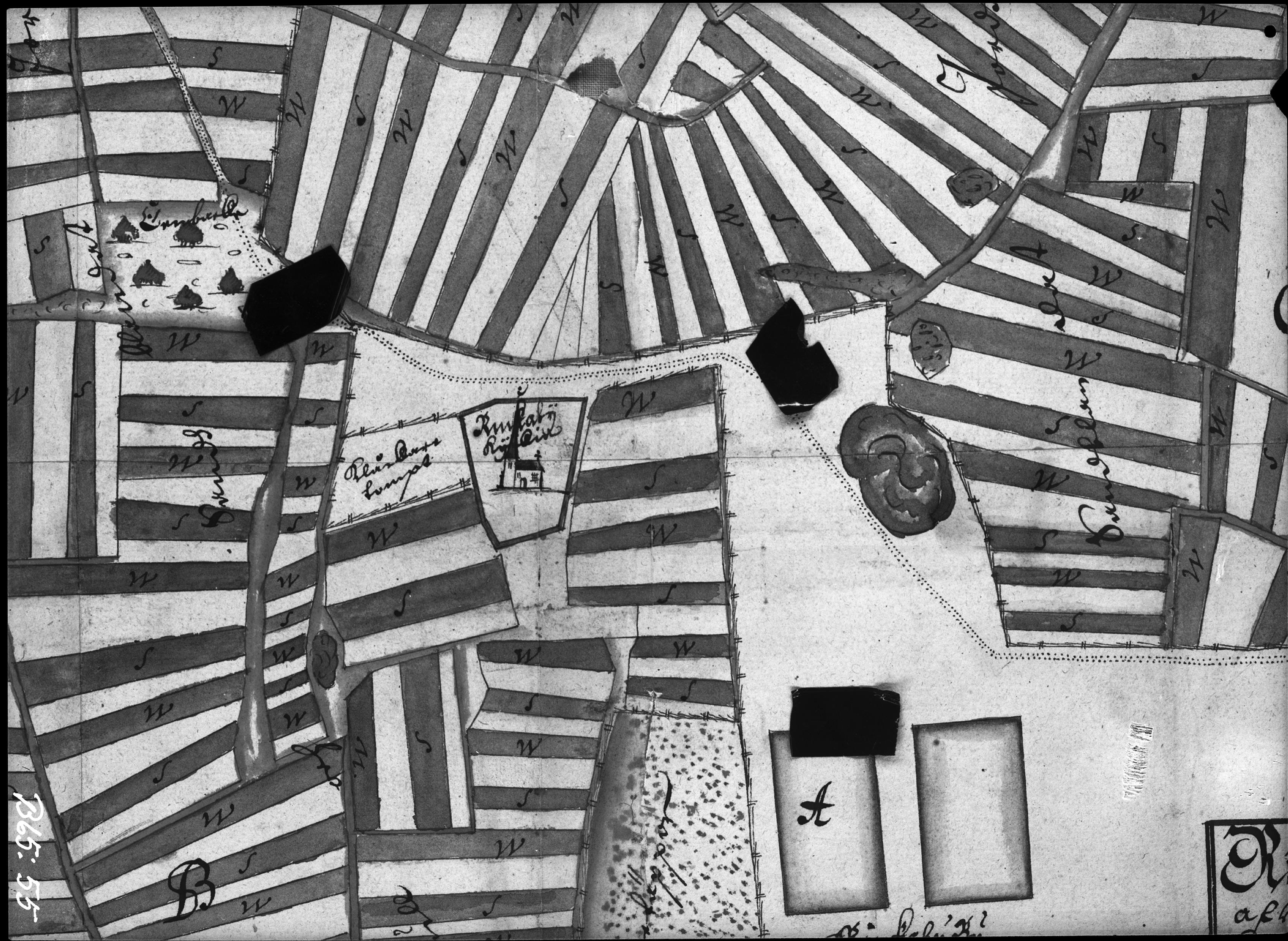 Foto av karta över Rinkaby kyrka med omgivningar, 1867 av G Thoring.