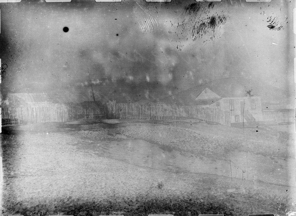 Fotografi från Eldslandet. Motiv av hus och staket.