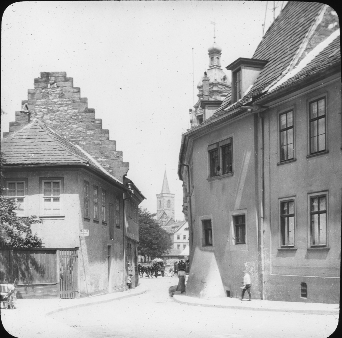 Skioptikonbild med motiv från gata i Erfurt.