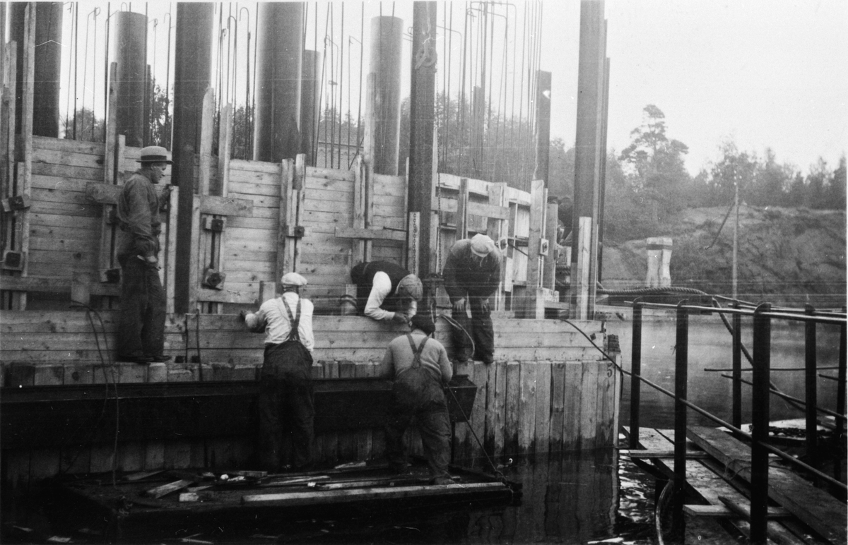 Byggherre: Byggnadsaktiebolaget Contractor, Stockholm. Götaälvsbron. Kassun färdiggjuten och försedd med provisoriska väggar av trä för bogsering.
