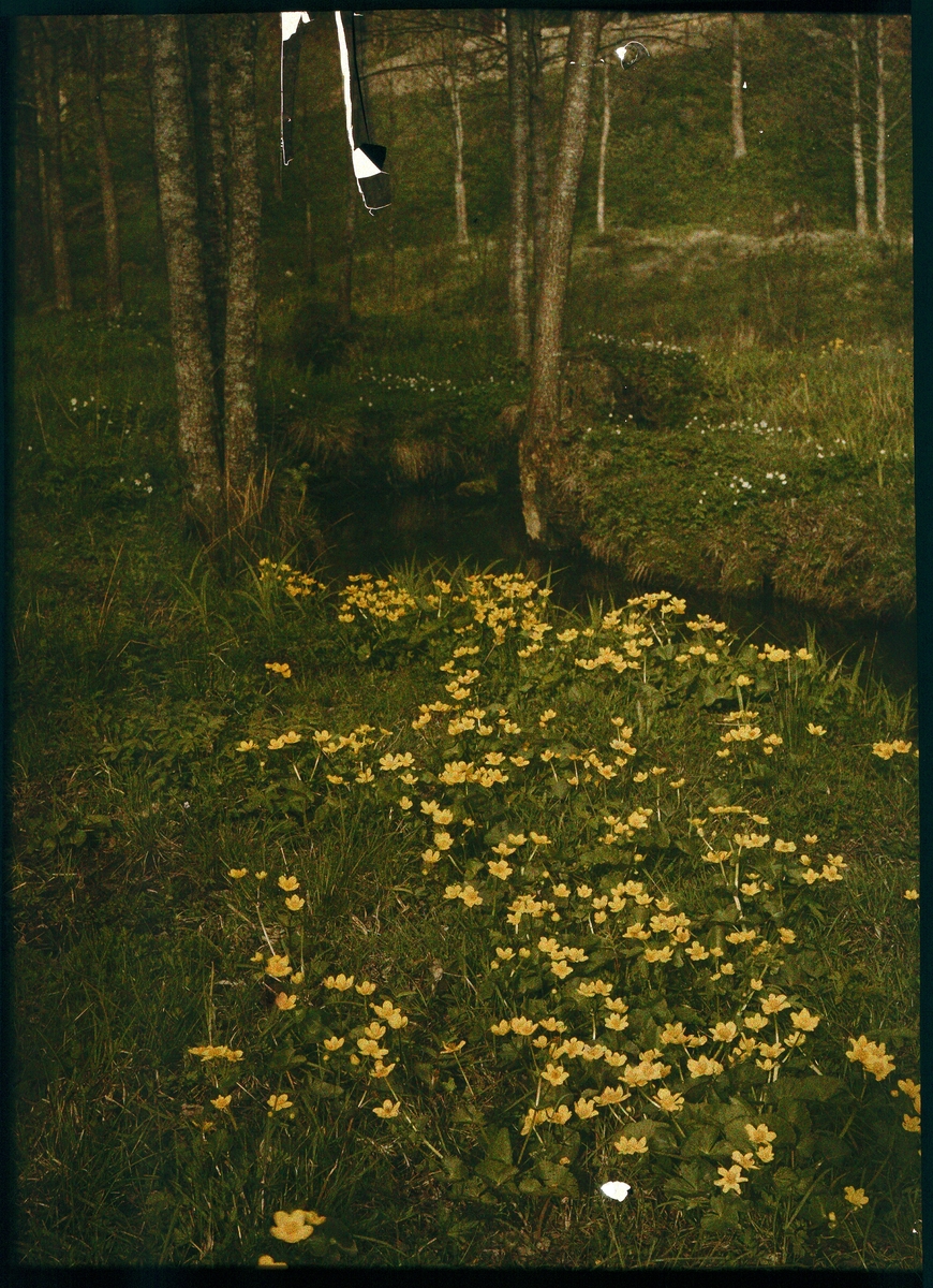 Lumières-stereo-autokromer, men ej ihopsatta. Gulsippor.