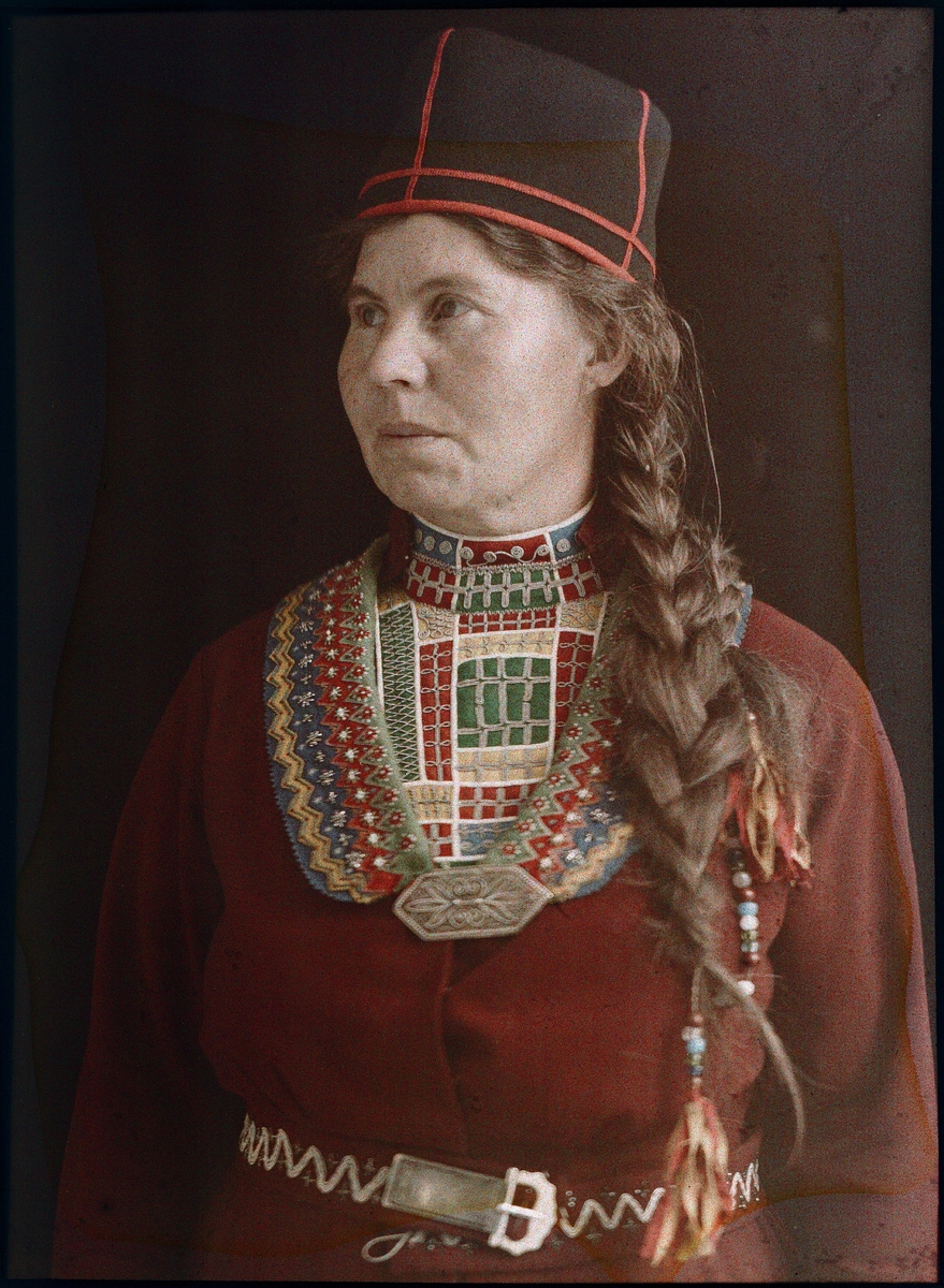 Agfa-autokrom. Porträtt av Karin Stenberg, Arvidsjaur. Lärare och Samepolitiker.