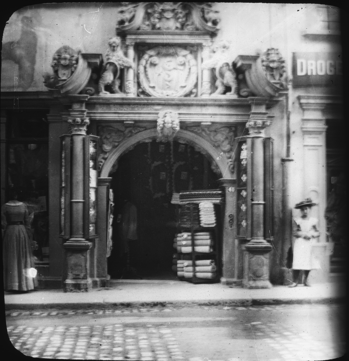 Skioptikonbild med motiv av butik i Schaffhausen.