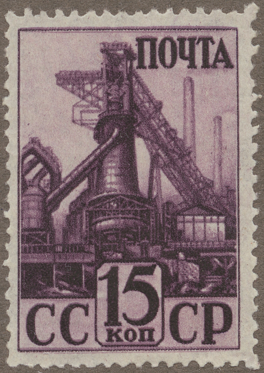 Frimärke från Ryssland, 1941. Motiv av Rysk masugn av 1941. -Propaganda för rysk industri-