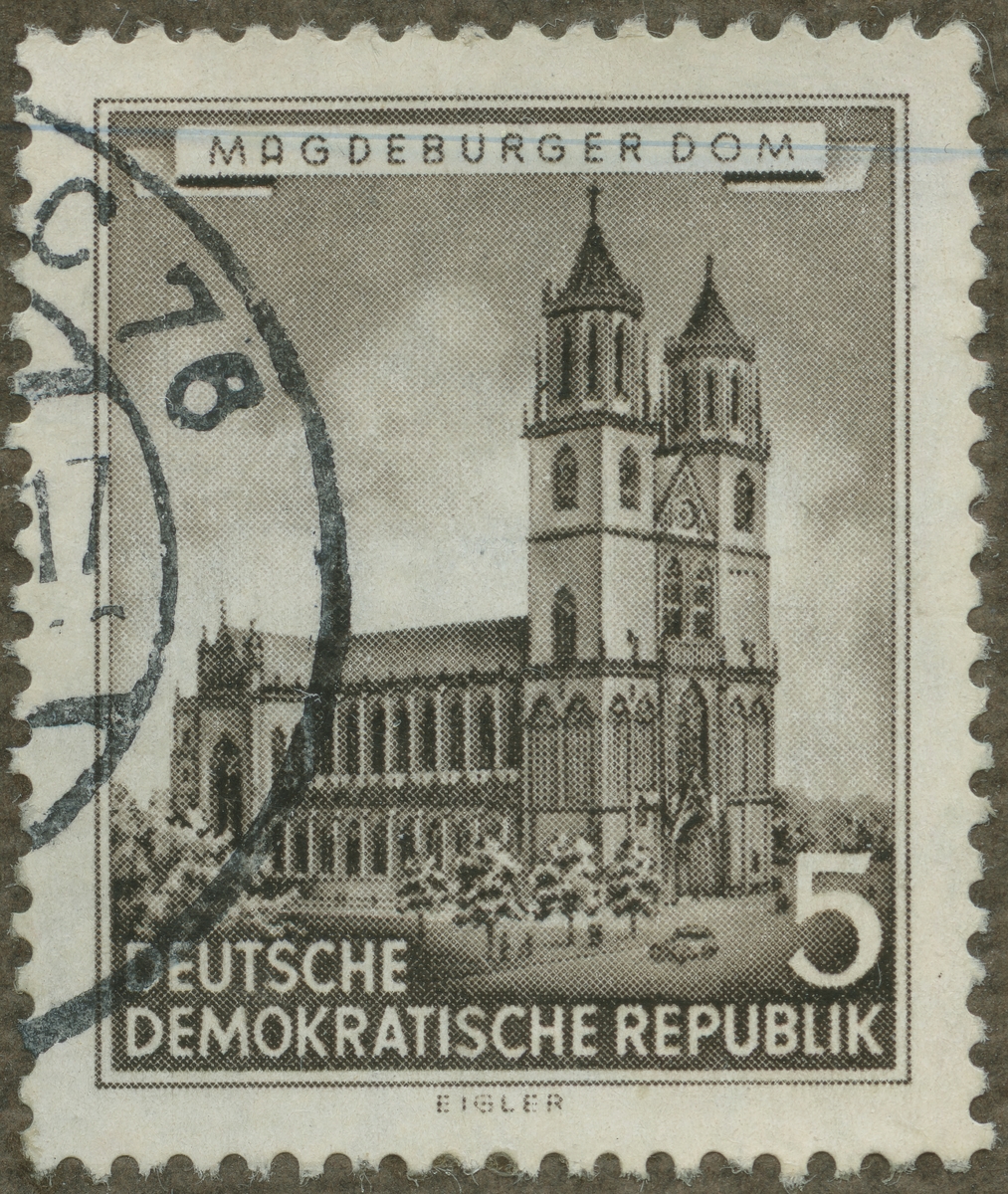 Frimärke från Östtyskland, 1956. Motiv av Domen i Magdeburg.