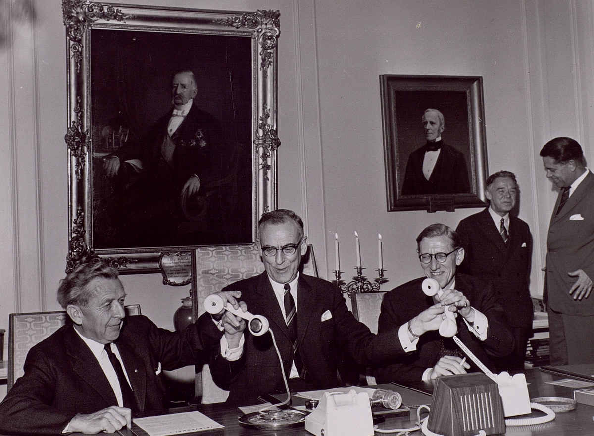 Invigningen av telefonkabeln Sverige - Storbritannien. Generaldirektör Sterky, statsrådet Skoglund och ambassadör Coulson.