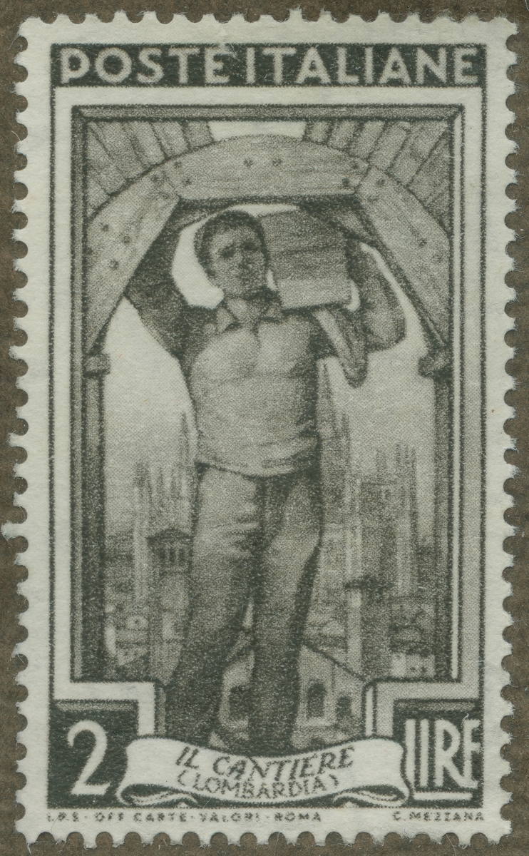 Frimärke från Italien, 1950. Motiv av murare från Lombardiet.