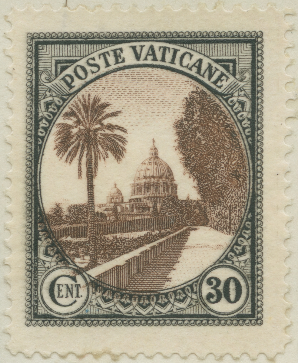 Frimärke från Vatikanen, 1933. Motiv av Petersdomen.