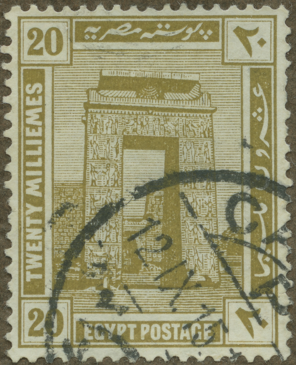 Frimärke från Egypten, 1914. Motiv av Karnak pylonen (portal) och templet Khonsu.