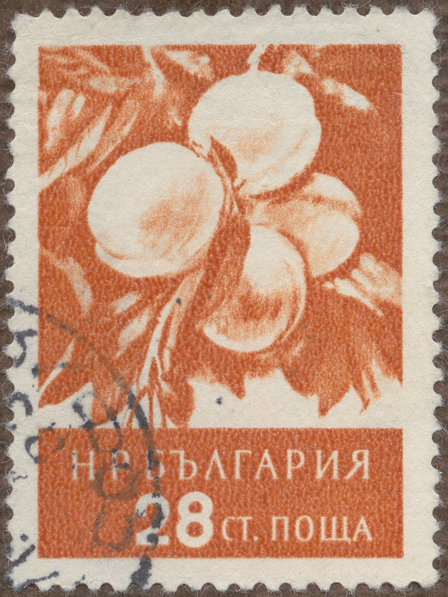 Frimärke från Bulgarien, 1956. Motiv av persikor. "Frukt serie".