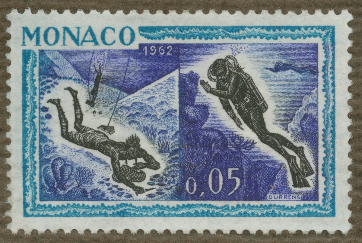 Frimärke från Monaco, 1962. "Havsforskningsserie".