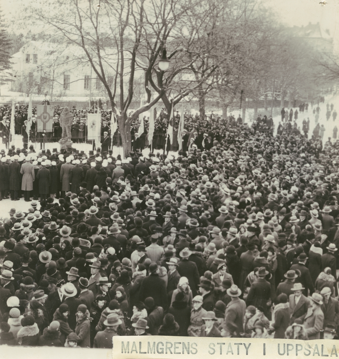 Fotografi från svenska undsättningsexpeditionen 1928. Motiv från avtäckningen av Finn Malmgrens staty i Uppsala.