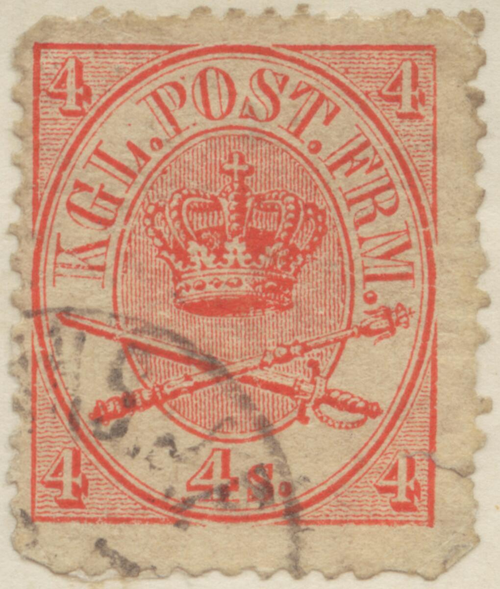 Frimärke från Danmark, 1864. Motiv av Symboler Krona Svärd