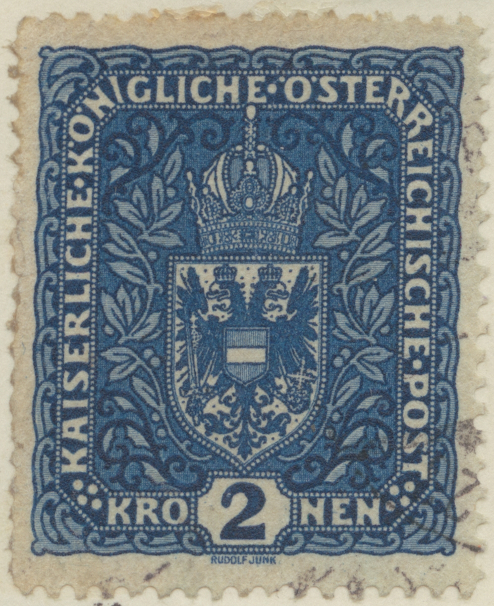 Frimärke från Österrike, 1916. Motiv av Österrikes Vapen: Dubbelörnen