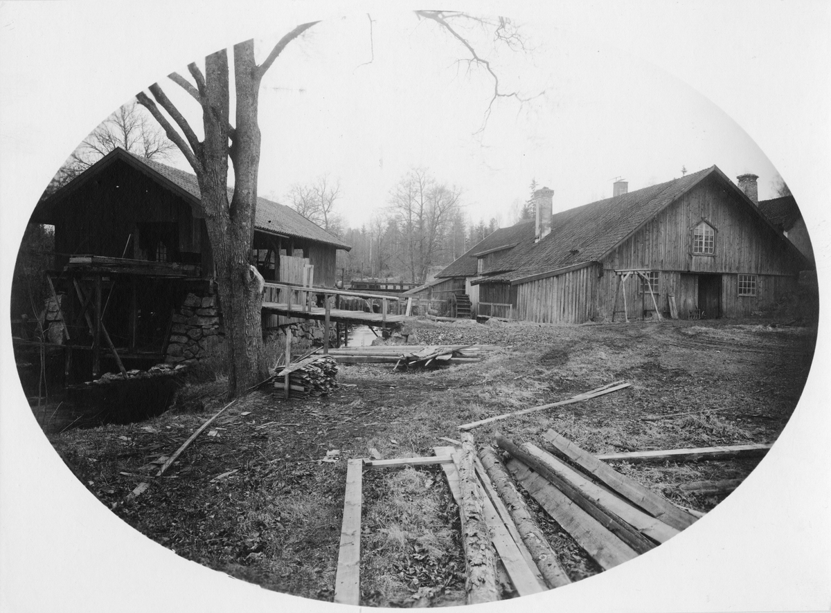 Häfla Bruk, Östergötland. Lancashiresmedjan, till höger den gamla sågen för ram- eller cirkelsåg.
