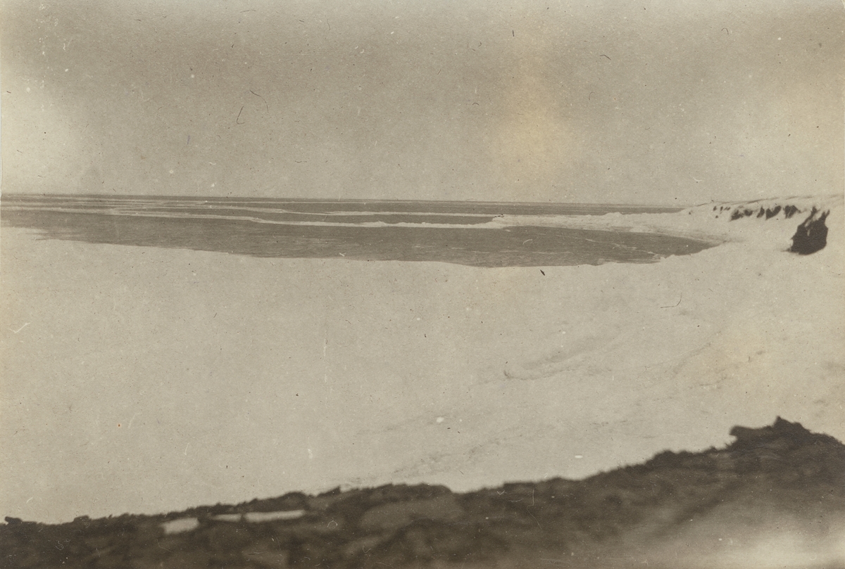 Fotografi från expedition till Spetsbergen. Vy över snölandskap och hav.