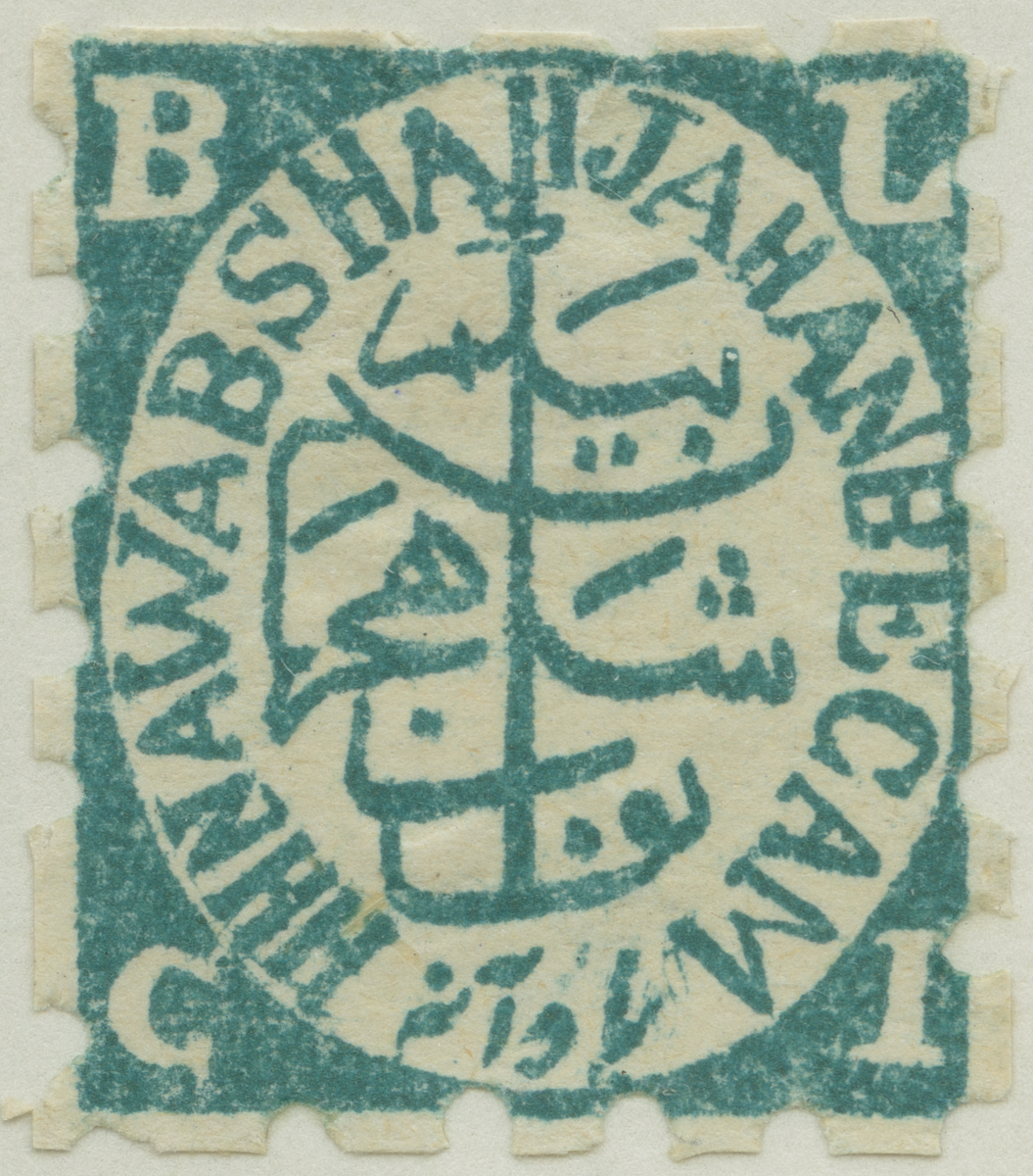 Frimärke från Bhopal, 1884. Motiv av Indisk skrift