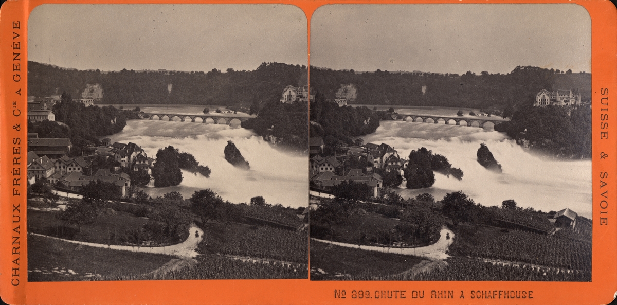 Stereobild, vy över Les chutes du Rhin (Rhine Falls).