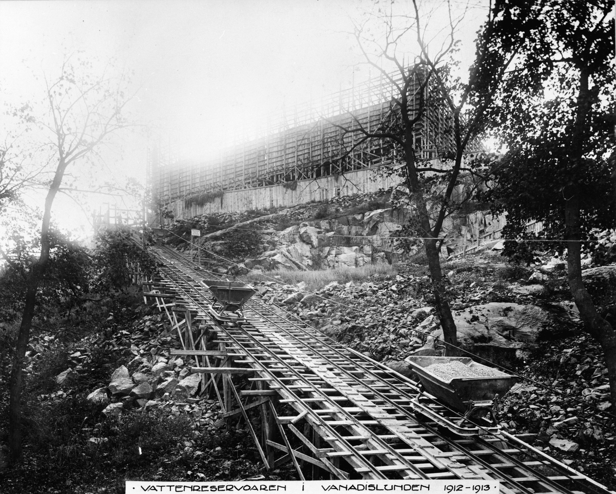 Titel: Byggherre: Byggnadsaktiebolaget Contractor, Stockholm. Vattenreservoar i Vanadislunden.