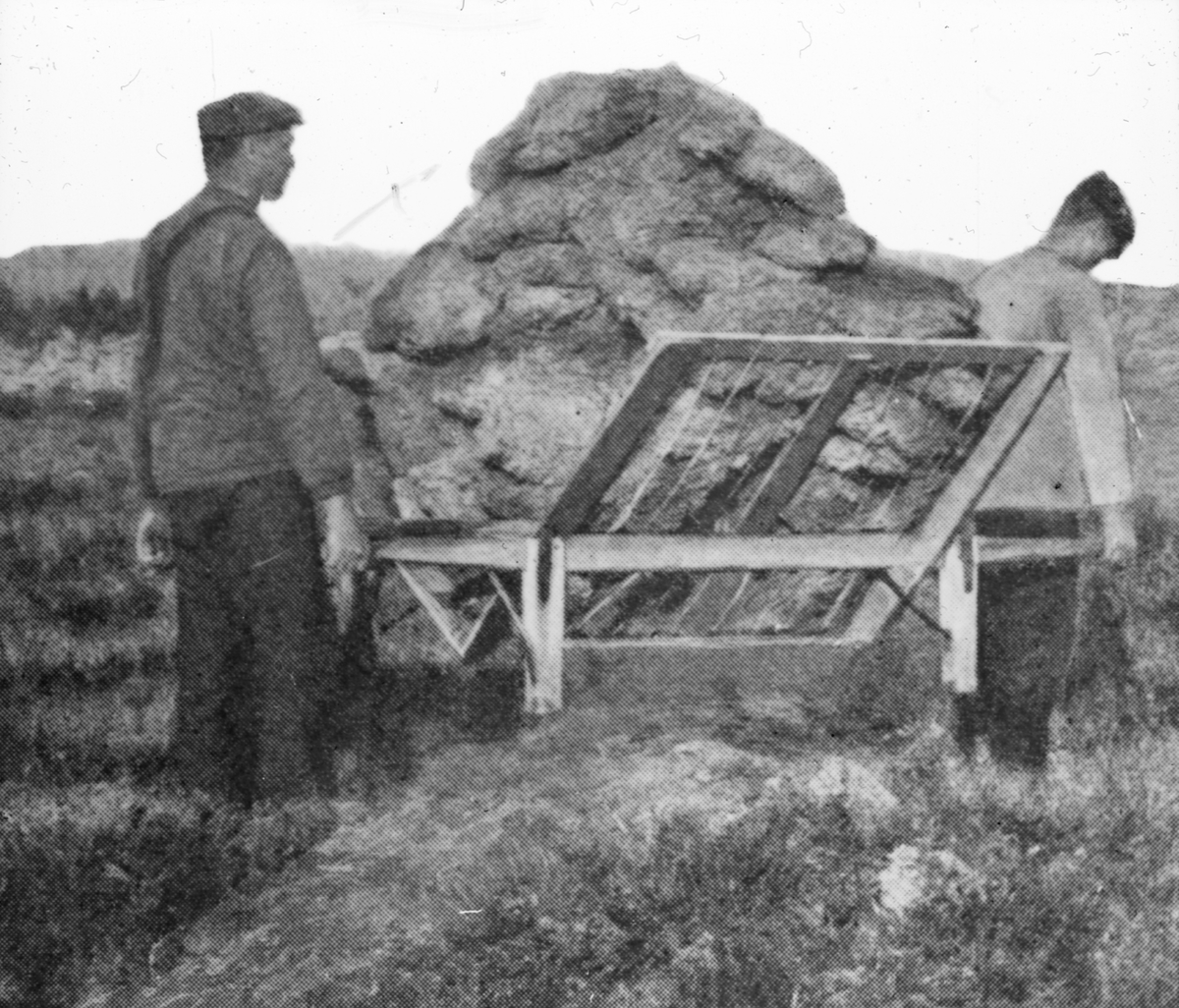 Skioptikonbild med motiv av torvbrytning på okänd mosse.