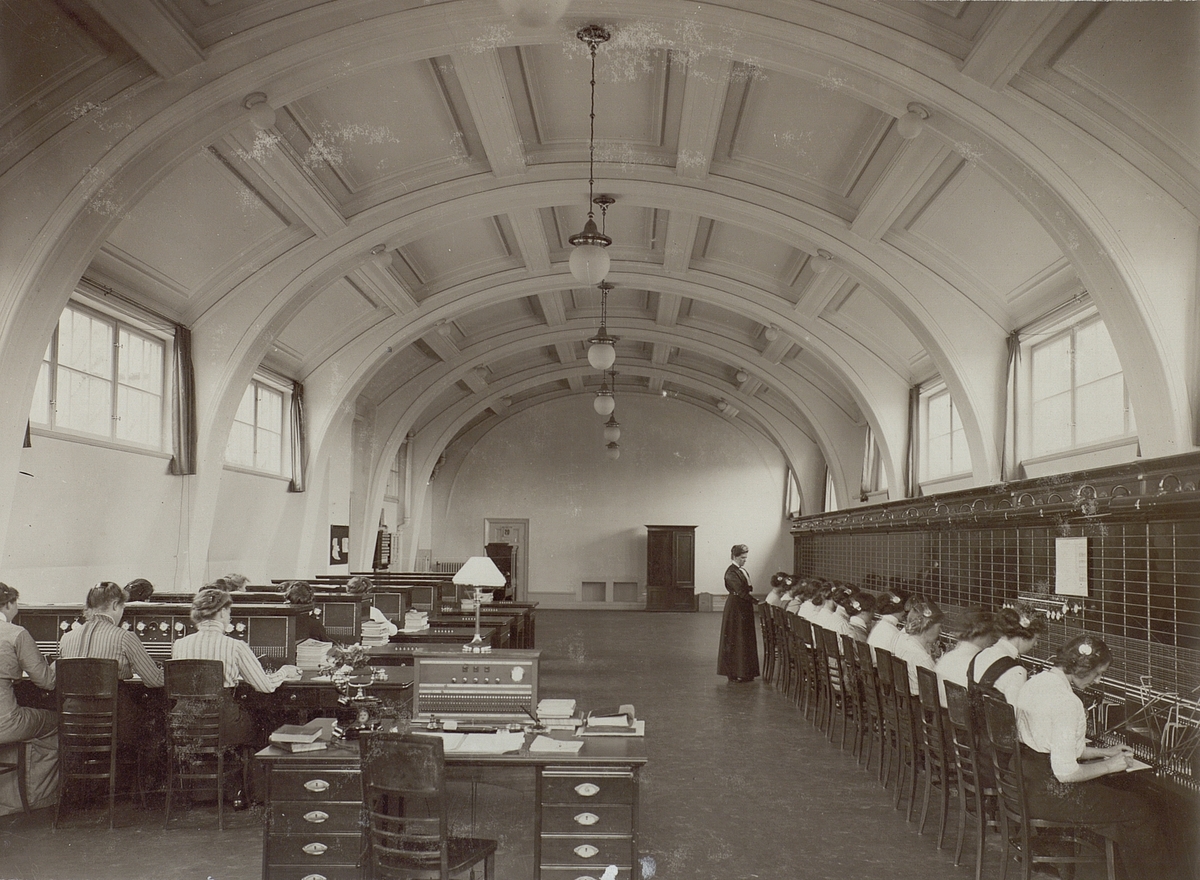 Gävle telefonstation (CB-station). Foto taget 1913. Interiör.