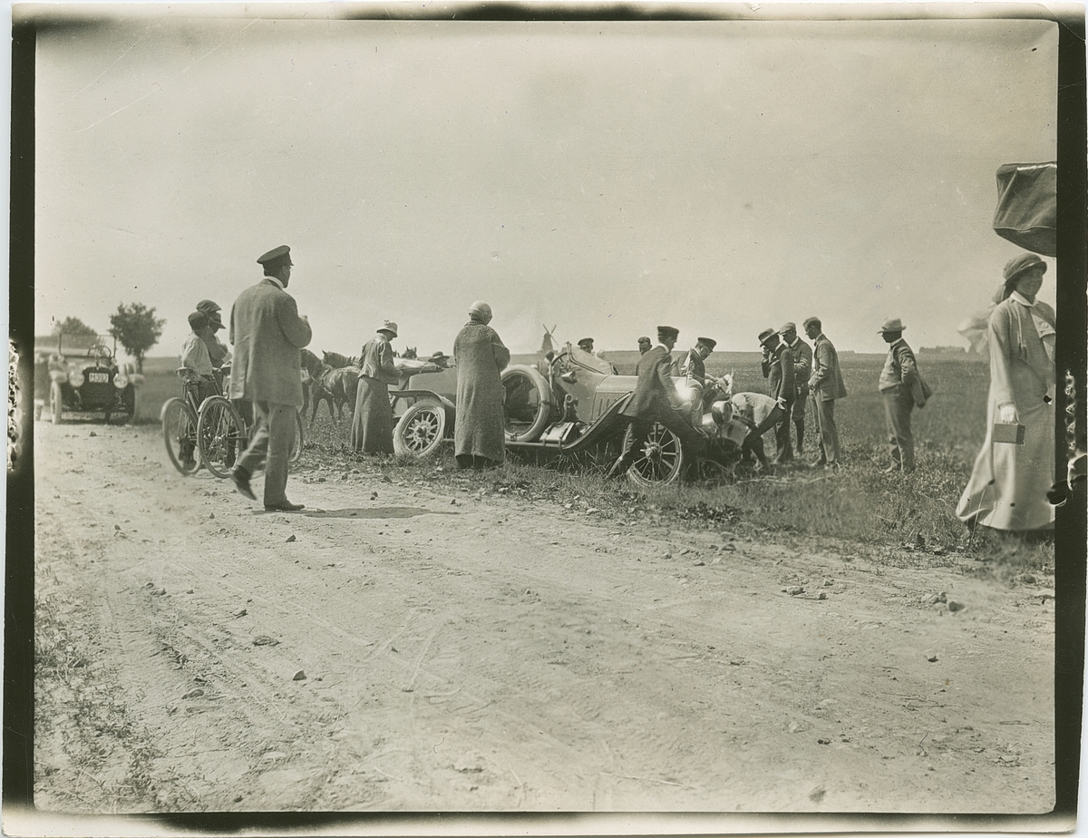 Biltävling. Fotografi från John Neréns motorhistoriska samling.