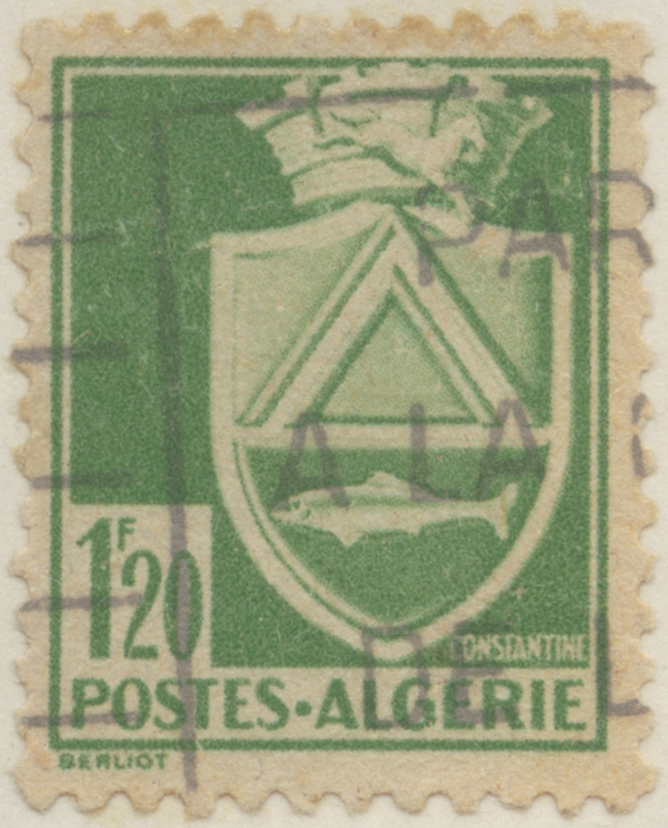 Frimärke från Franska Algeriet, 1942. Motiv av Krona Staden Constantine:s vapen "Serie: algeriska städers vapen"