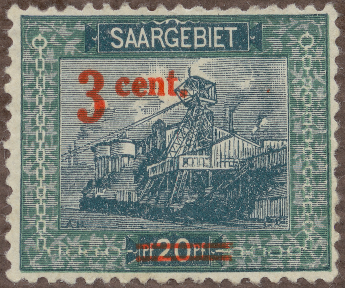 Frimärke från Saar, 1921. Motiv av Extraktionsanläggningen vid Reden i Saar